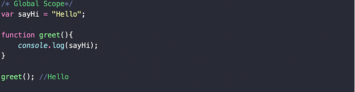 Eğer var ile tanımlanan bir değişken, bir fonksiyon içerisinde oluşturulmuş ise, sadece o ve nested dediğimiz fonksiyon içerisinde bulunan diğer fonksiyonlar içerisinde çağırılıp kullanılabilir.